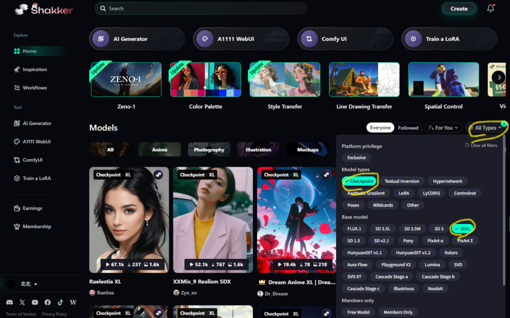 デフォルトで使用可能なMODEL以外でも、Shakkerで公開されているMODELをA1111 WebUIでも使用可能です。