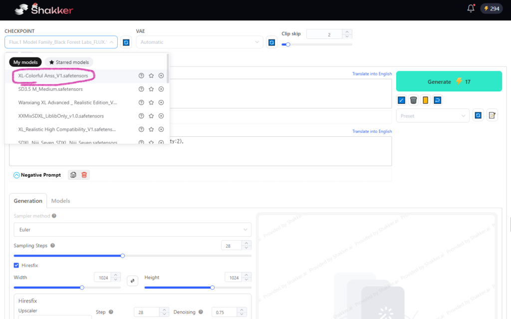 Shakkerをどういう目的で使用するかにもよりますが、頭の中で描いているものを画像生成しようという場合は、使用できるMODELの種類的にも消費トークン的にも、SDXLのベースモデルを使用するのが個人的にはおすすめです。