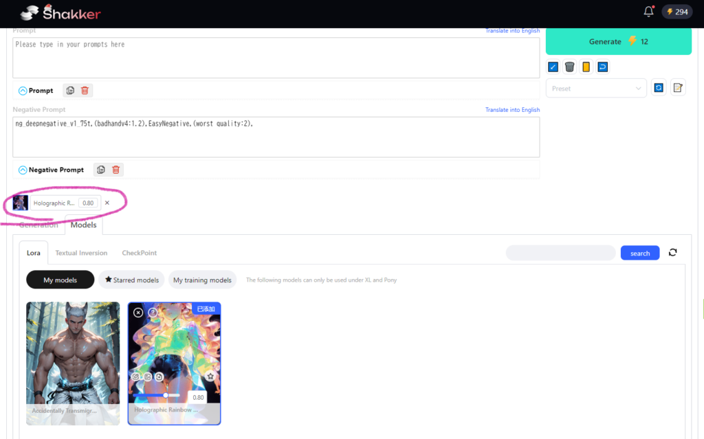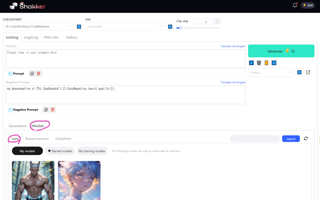 Shakker内ではこのトークンを消費して画像生成を行います。